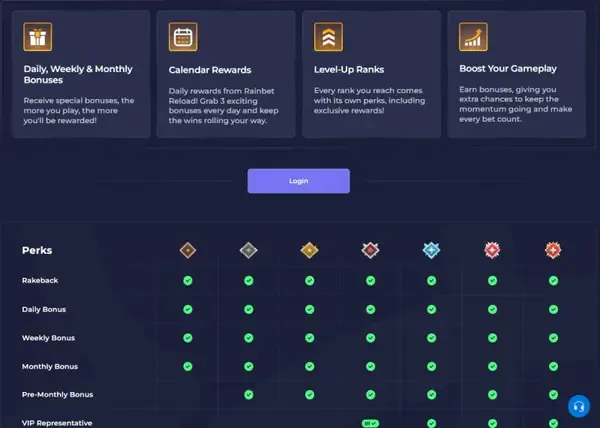 Rainbet lojalitetsnivåer og VIP-behandling