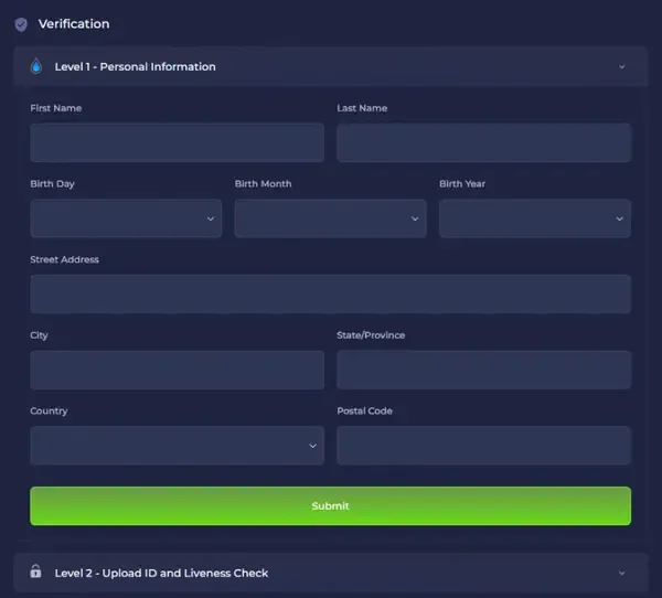 Gå gjennom alle oppføringer og korriger eventuelle stavefeil, siden de kan forsinke verifisering. Send inn skjemaet for å fullføre Rainbet-registrering. Du vil se en bekreftelse på at kontoen din er aktiv og klar for innskudd og spill.